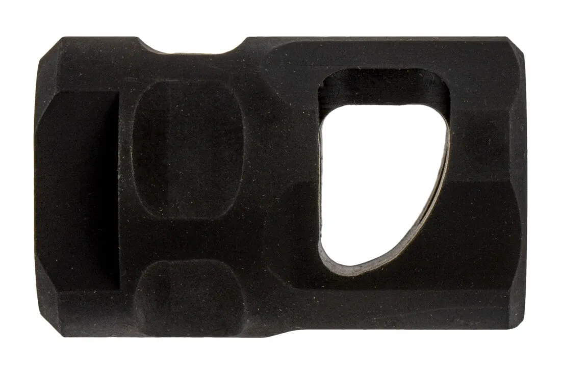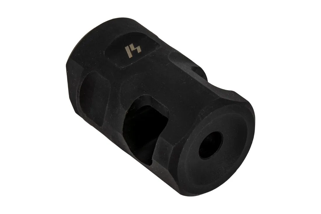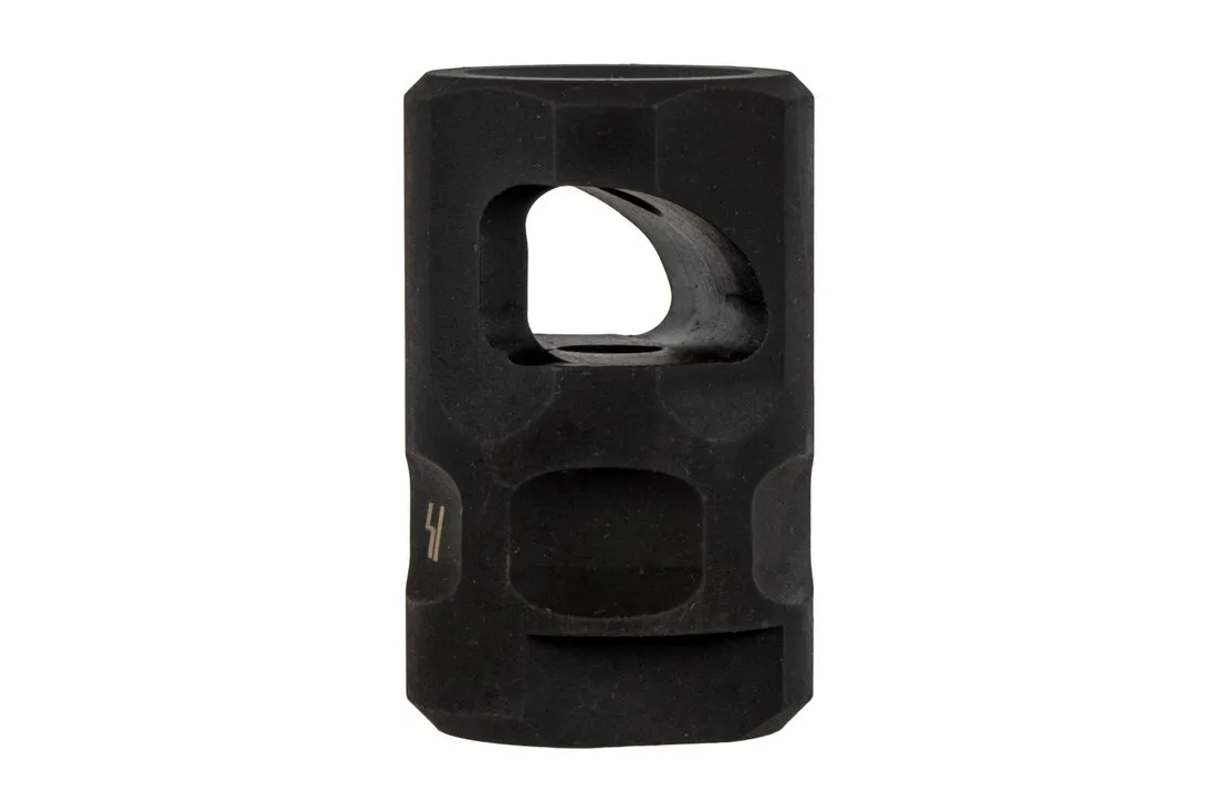 The SI Sail Comp is a high efficiency single chamber brake. The Sail comp derives its name from the unique baffle shape that redirects muzzle gasses out and upward providing recoil mitigation and muzzle rise control. The Sail Comp packs the performance of larger, heavier devices into a compact, lightweight package.